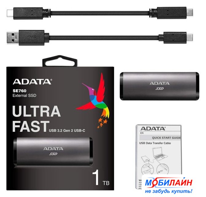 SSD, USB 3.2 Gen2 (10 Гбит/с), цвет темно-серый