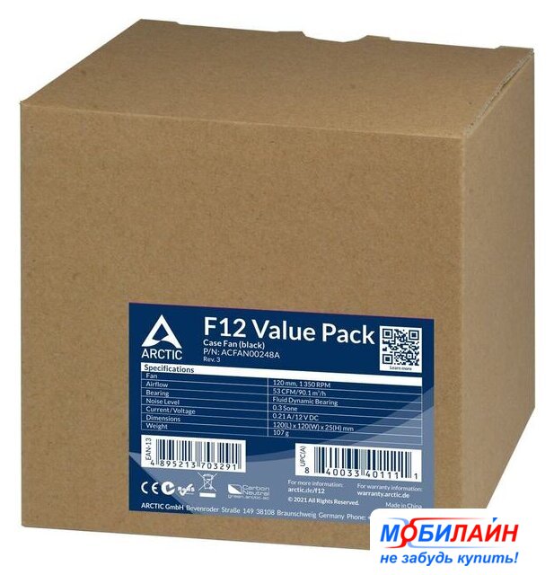 набор вентиляторов, шум 30.5 дБ, вентилятор 120 мм, 1500 об/мин, PWM