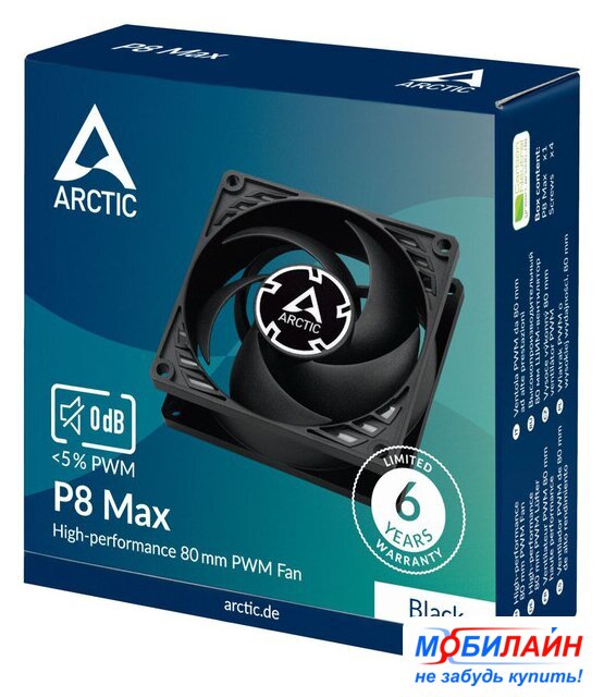 вентилятор для корпуса, шум 22.5 дБ, вентилятор 80 мм, 3000 об/мин, PWM