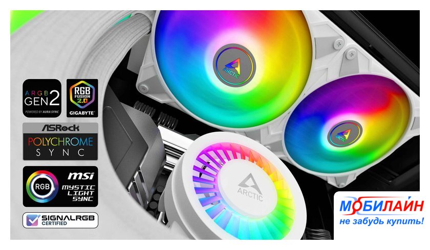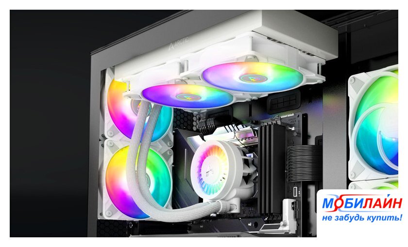 типоразмер 360, высота 52 мм, вентилятор 120 мм, прямое направление потока, 2150 об/мин, PWM, подшипник гидродинамический (FDB), ARGB подсветка, макс. шум 32 дБ