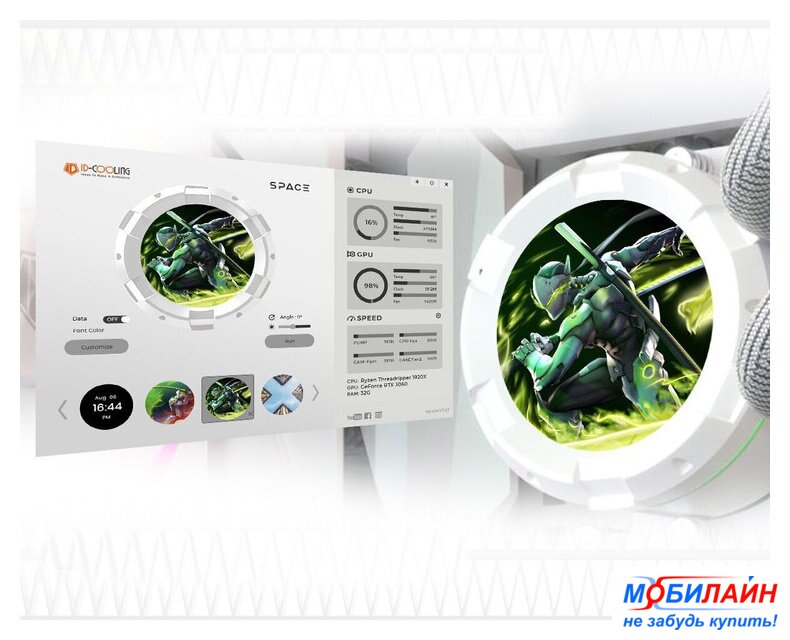 типоразмер 240, высота 27 мм, макс. шум 38.71 дБ, вентилятор 120 мм, 2400 об/мин, PWM, подшипник гидродинамический (FDB), ARGB подсветка