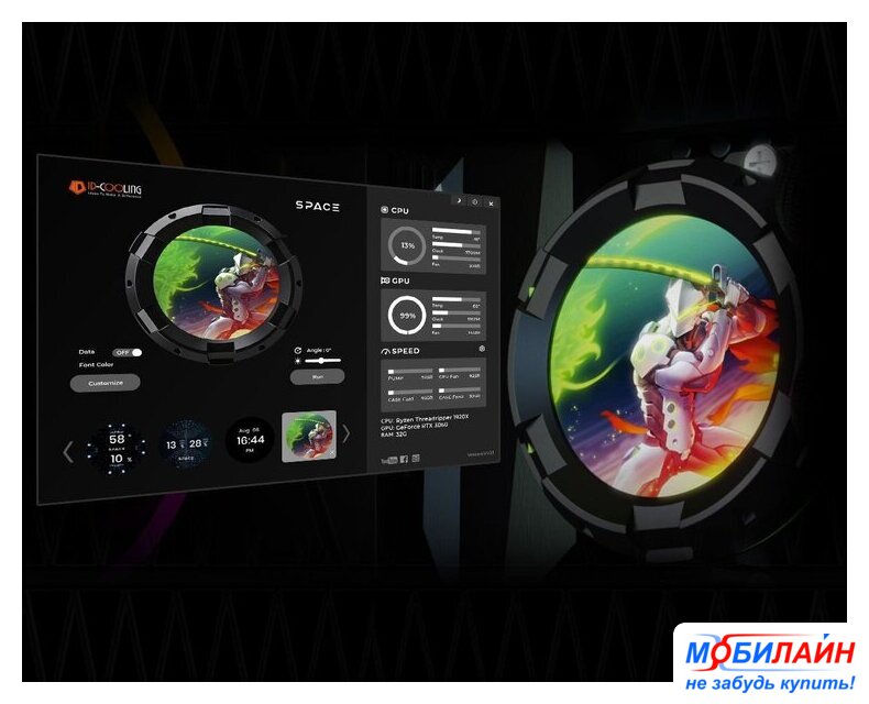 | Встроенный дисплей на водоблоке | 480x480, 24-bit, 16.7 million |