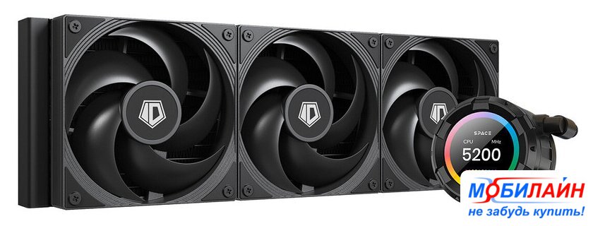 типоразмер 360, рассеивание до 350 Вт, высота 27 мм, макс. шум 35.2 дБ, вентилятор 120 мм, 1800 об/мин, PWM, подшипник гидродинамический (FDB), ARGB подсветка