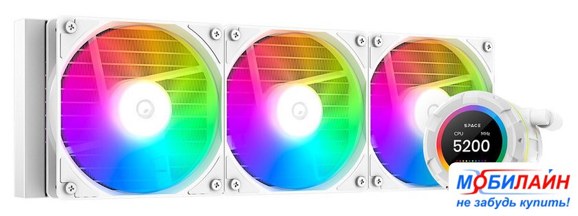 типоразмер 240, рассеивание до 300 Вт, макс. шум 35.2 дБ, вентилятор 120 мм, 1800 об/мин, PWM, ARGB подсветка, белый