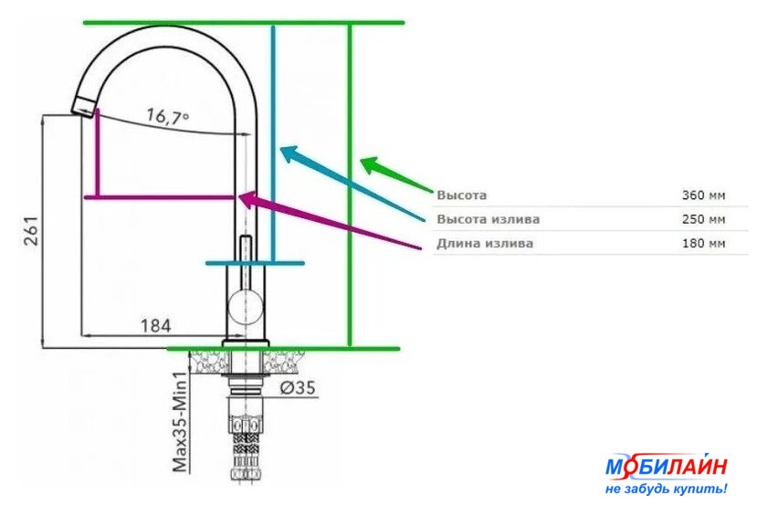 однорычажный смеситель для мойки, монтаж на раковину или столешницу