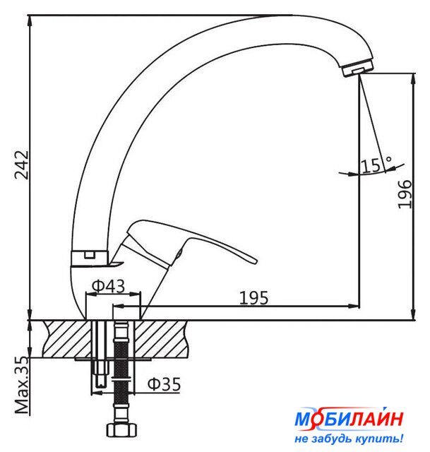 однорычажный смеситель для мойки, монтаж на раковину или столешницу