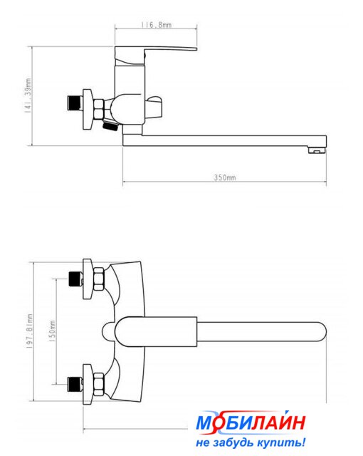 | Длина (вылет) излива | 350 мм |