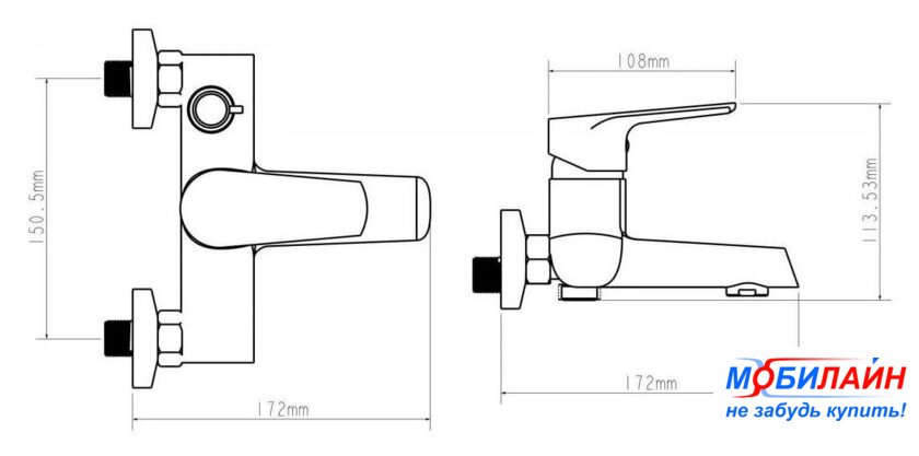 однорычажный смеситель для ванны и душа, монтаж на стену
