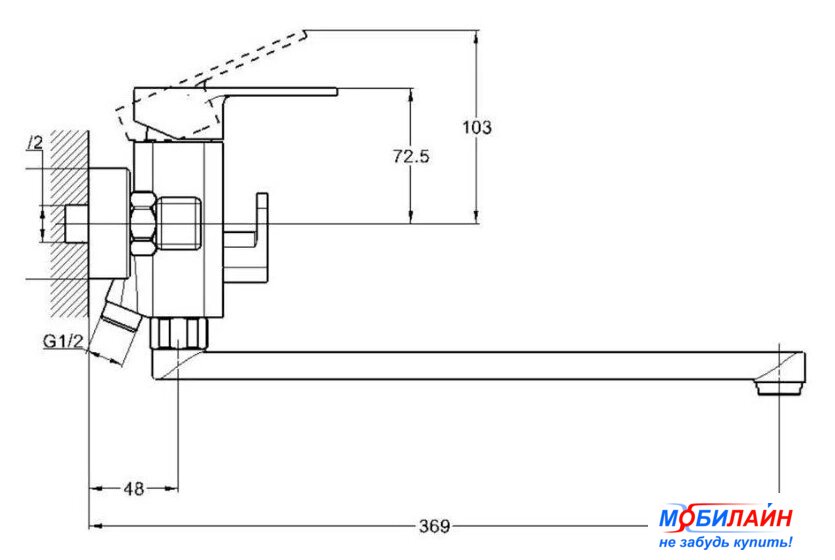 однорычажный смеситель для ванны и душа, монтаж на стену