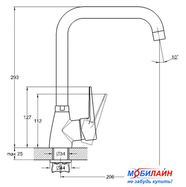 однорычажный смеситель для кухни, монтаж на раковину или столешницу
