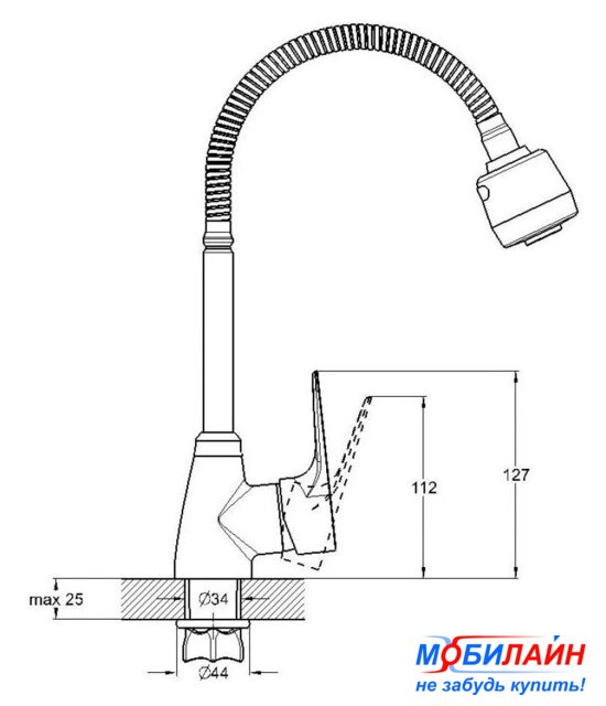 однорычажный смеситель для кухни, монтаж на раковину или столешницу