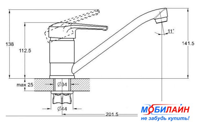 однорычажный смеситель для кухни, монтаж на раковину или столешницу