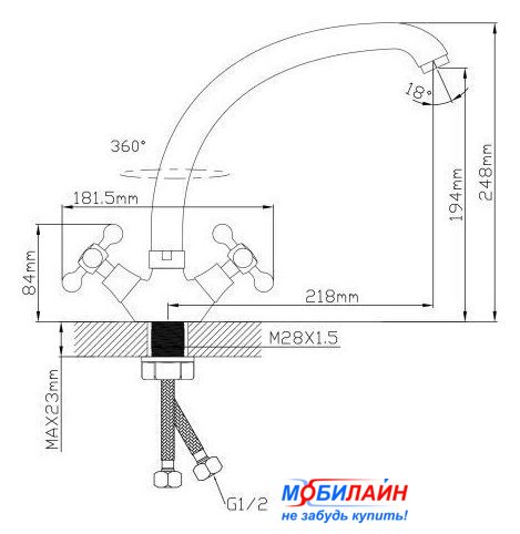 двухвентильный смеситель для кухни, монтаж на раковину или столешницу