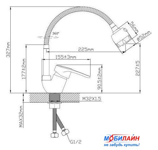 однорычажный смеситель для кухни, монтаж на раковину или столешницу