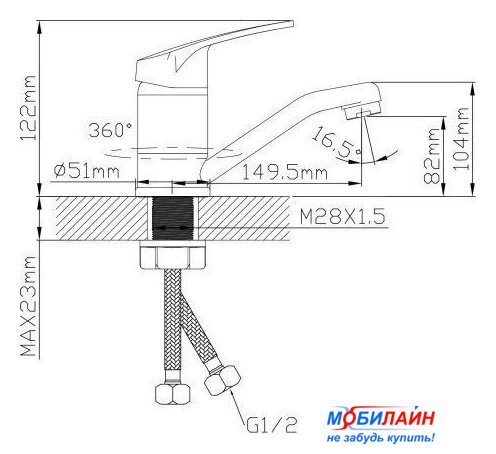 | Длина (вылет) излива | 149.5 — 149.5 мм |