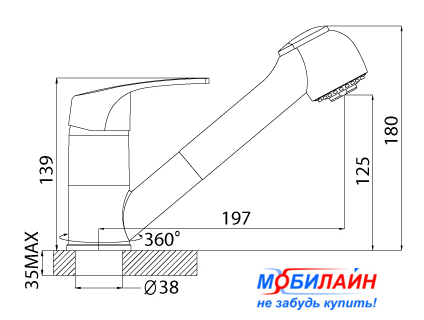 однорычажный смеситель для умывальника, монтаж на раковину или столешницу