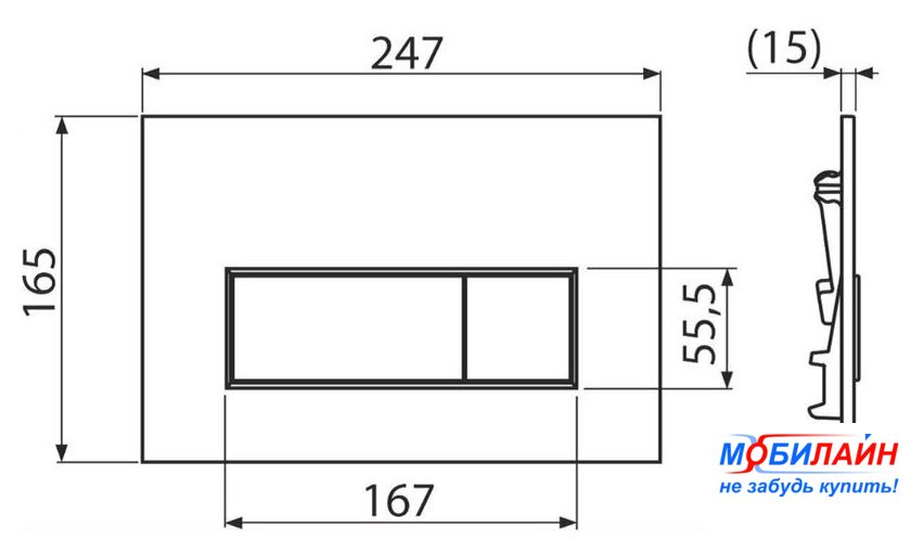 клавиша смыва, для унитаза, управление механическое, смыв двойной, наружный монтаж, 247x165 мм, цвет: хром