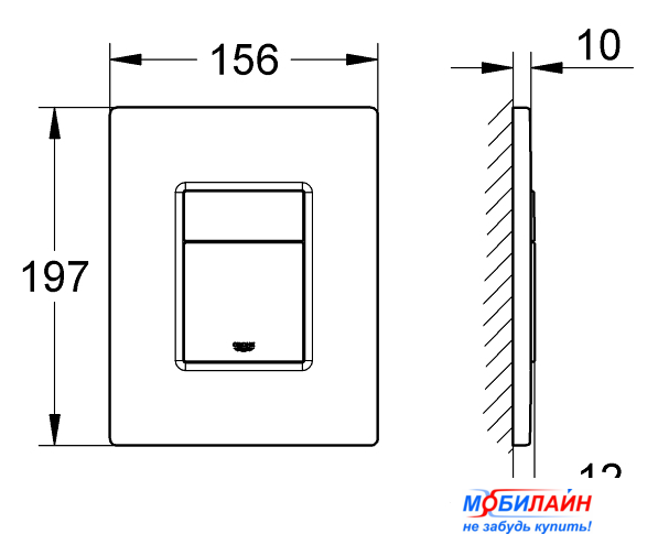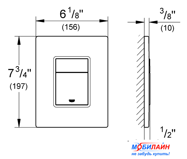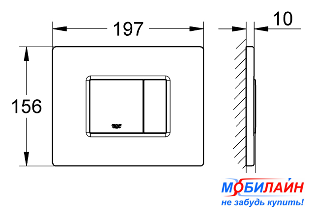 для унитаза, управление механическое, смыв двойной, скрытый монтаж, 247x165 мм, цвет: белый