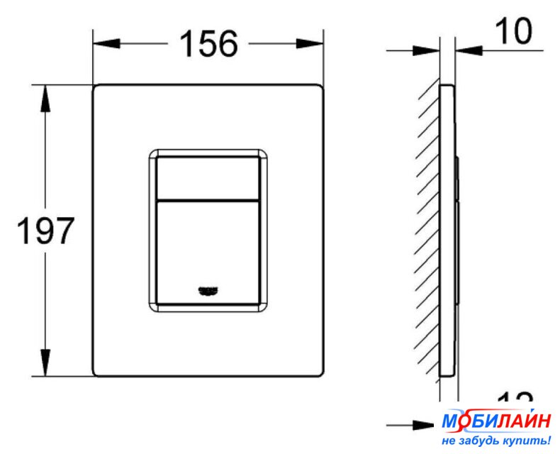 управление механическое, смыв двойной, скрытый монтаж, 247x165 мм, цвет: черный