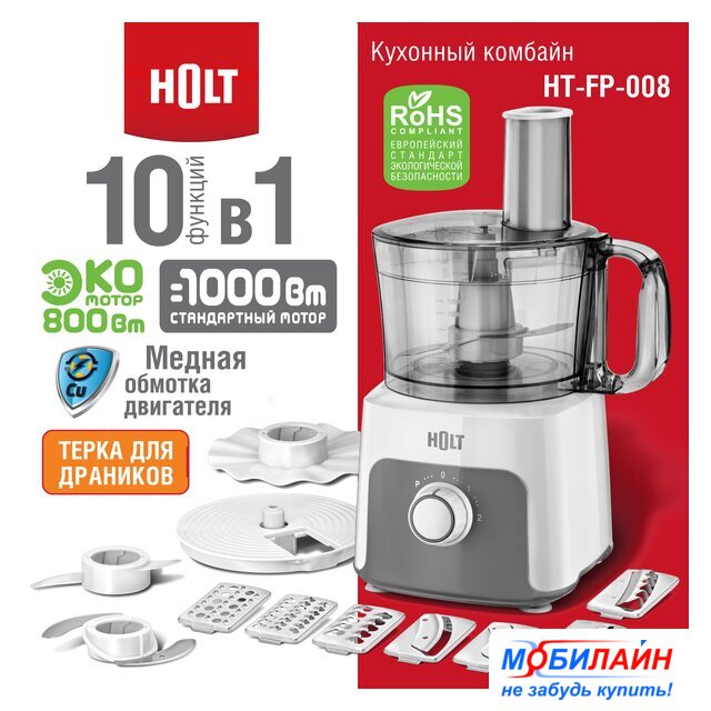 1000 Вт, объем чаши: 1.2 л, терки, измельчитель, соковыжималка