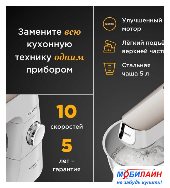 1200 Вт, планетарное смешивание, объем чаши: 6.7 л