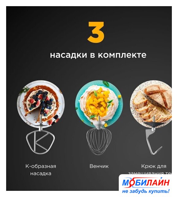 | Функции | взбивание, смешивание, замешивание дрожжевого теста |