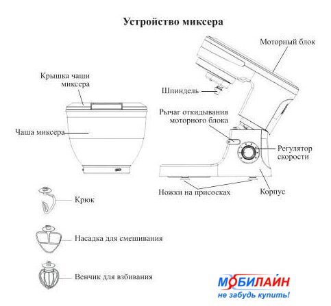 1000 Вт, планетарное смешивание, объем чаши: 4.5 л