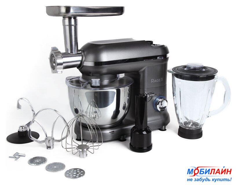 1500 Вт, планетарное смешивание, объем чаши: 5.2 л, терки, мясорубка