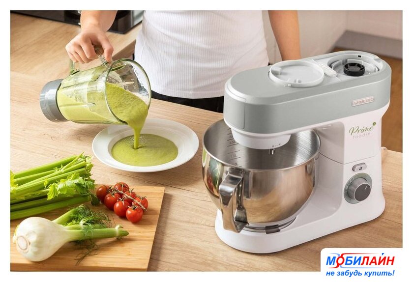 1200 Вт, планетарное смешивание, объем чаши: 5.5 л, терки, мясорубка, блендер