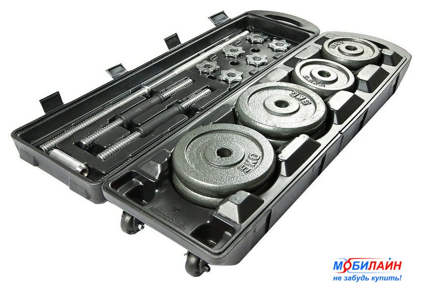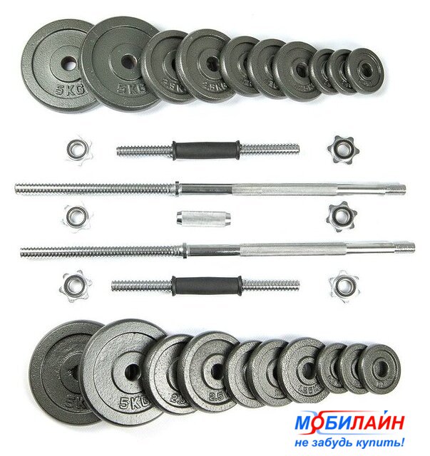 Комплектация | - Диски Atlas Sport 0,5 кг - 6 шт. (диаметр диска 9 см, толщина 1,5см)- Диски Atlas Sport 1,25 кг - 6 шт.(диаметр диска 11 см, толщина 2,5 см)- Диски Atlas Sport 2,5 кг - 4 шт.(диаметр диска 14 см, толщина 2,6 см)- Диски Atlas Sport 5 кг - 4 шт.(диаметр диска 19см, толщина 3см)- Гриф для гантелей (L: 355 мм, D: 25 мм) - 2 шт.- Гриф для штанги (L: 1500 мм, D: 25 мм) - 1шт. |