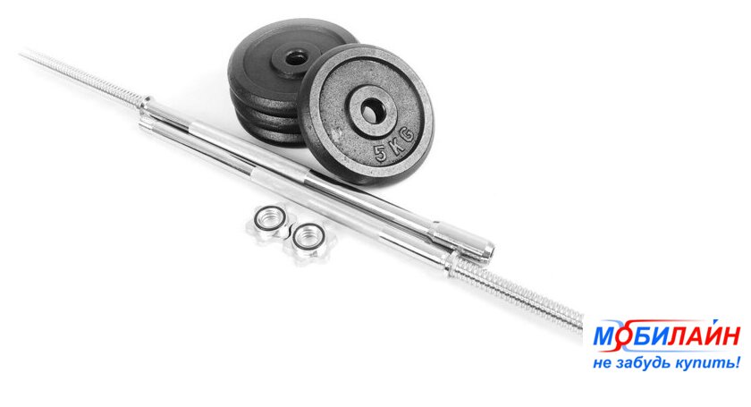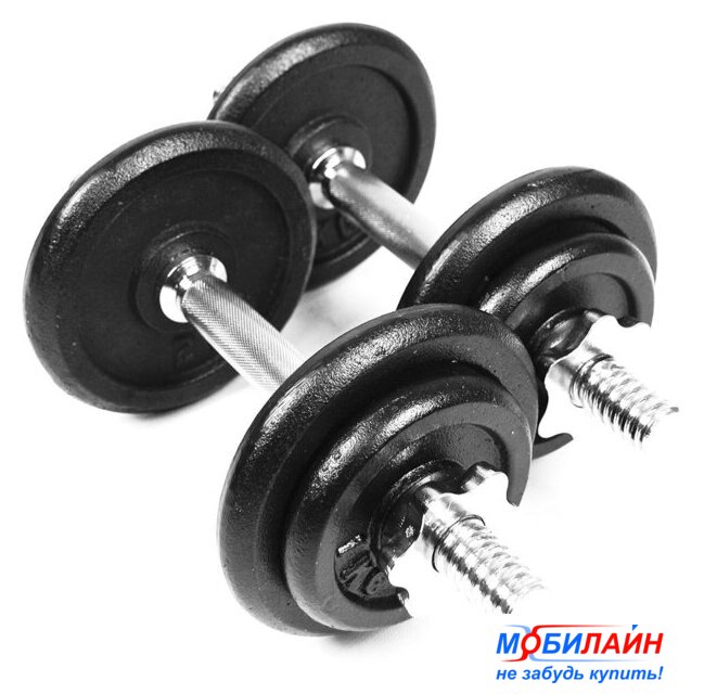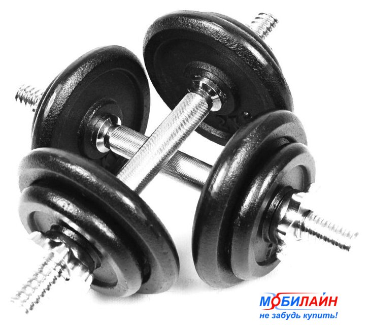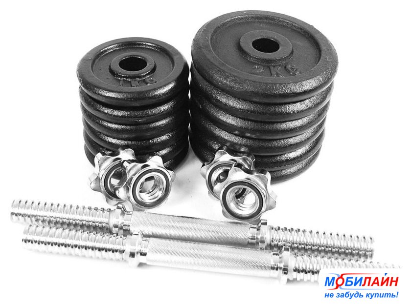 набор гантелей с грифом для штанги, вес снаряда 50 кг, конструкция: разборная, посадочный 26 мм, длина 35 см