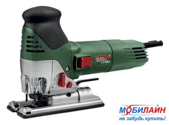 620 Вт, рукоятка-скоба, глубина пропила: 65 мм (дерево), 8 мм (сталь), 0–3000 ходов/мин, 2 кг