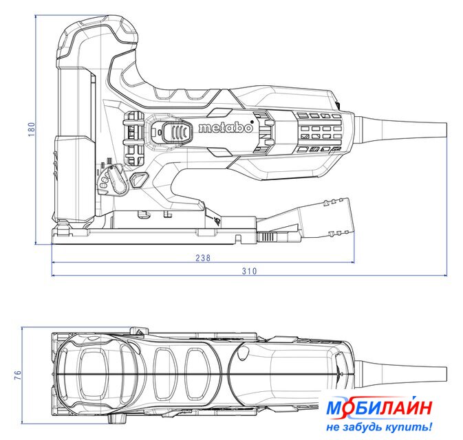 700 Вт, рукоятка-скоба, глубина пропила: 100 мм (дерево), 10 мм (сталь), 1000–3200 ходов/мин, ход пилки: 20 мм, 2.2 кг