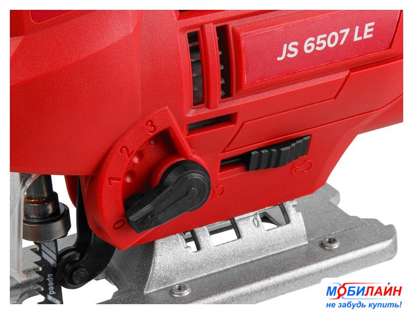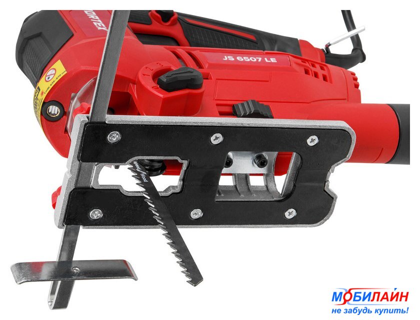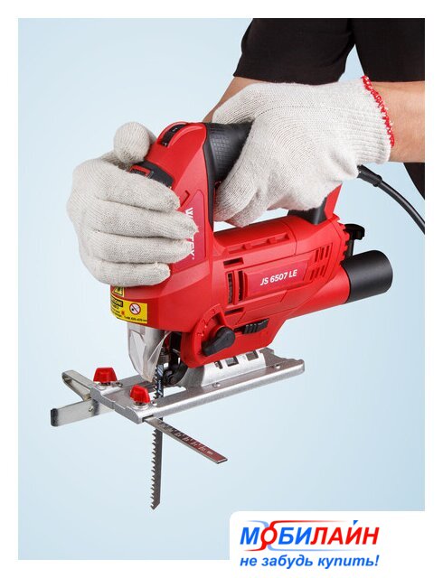 рукоятка-скоба, питание: сеть, 800 Вт, глубина пропила: 100 мм (дерево), 10 мм (сталь), 800–3000 ходов/мин