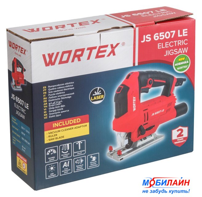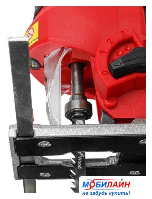 рукоятка-скоба, питание: сеть, глубина пропила: 100 мм (дерево), 10 мм (сталь), 800–3000 ходов/мин, ход пилки: 23 мм, 2.5 кг
