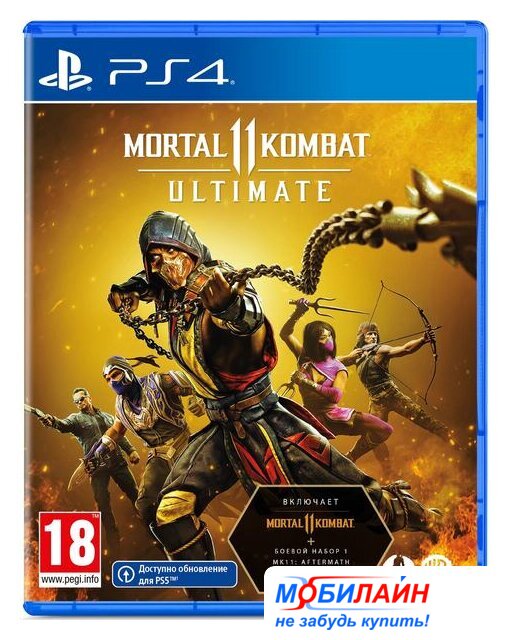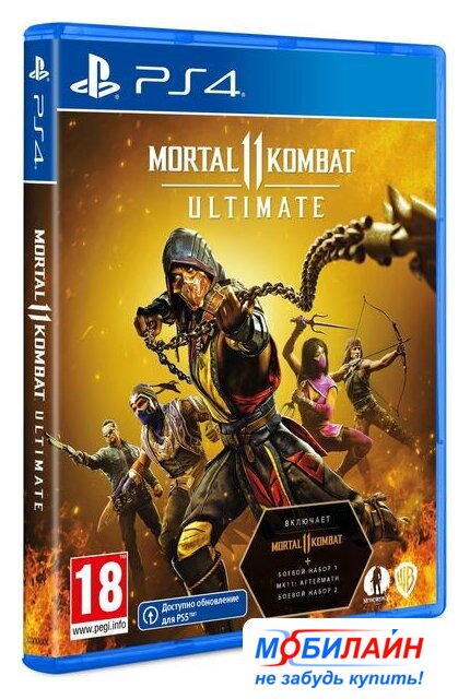 В комплекте | · Самая полная версия Две высоко оцененные критиками сюжетные кампании, которые отправят игроков в кинематографичное приключение, продолжающее грандиозную сагу о смертельной битве, а также полный ростер, включающий 37 доступных для игры персонажей.· Дополнение Mortal Kombat 11: Aftermath Первое в истории серии сюжетное дополнение, три доступных для игры персонажа (Фуджин, Шива и Робокоп) и 10 дополнительных обликов.· Боевой набор 1 Шесть доступных для игры персонажей (Шан Цзун, Ночной Волк, Синдел, Джокер, Терминатор Т-800 и Спаун) и 25 дополнительных обликов для персонажей.· Боевой набор 2 Новейшие бойцы: Милина – созданный из эденийской и таркатанской крови клон принцессы Китаны; Рейн – эденийский полубог королевской крови; Рэмбо, легендарный солдат спецназа с внешностью и голосом актера Сильвестра Сталлоне.· Обновление до версии для PS5 Динамическое разрешение 4K, улучшенная графика, сокращенное время загрузок и совместимость между поколениями консолей, доступная в избранных режимах. Владельцы и новые покупатели Mortal Kombat 11 и Mortal Kombat 11.Ultimate для PS4 и PS4 Pro смогут получить бесплатное обновление до версии для PS5, которое будет доступно в день поступления в продажу Mortal Kombat 11 Ultimate.· Поддержка кроссплатформенной игры Владельцы PS5, PS4, Xbox Series X|S и Xbox One смогут сражаться в избранных режимах с пользователями, играющими на других платформах. |
