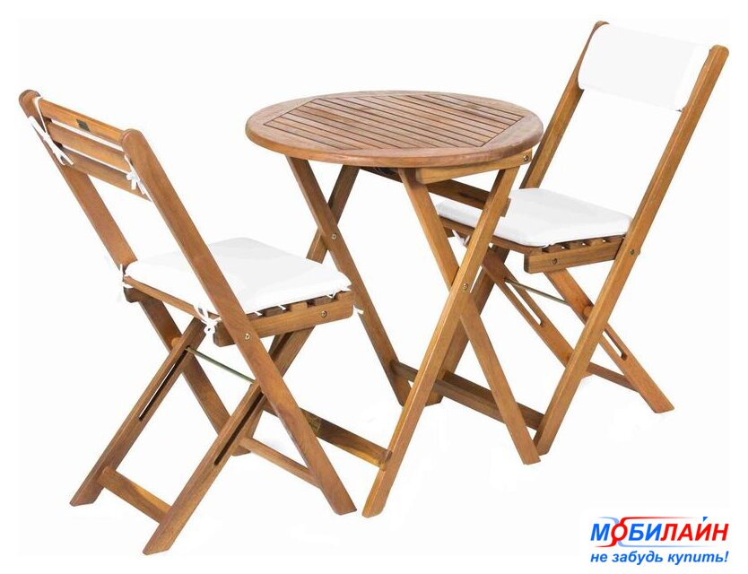 стол + 2 стула, основание - дерево, столешница - дерево, сиденье: 400×550 мм, материал: дерево