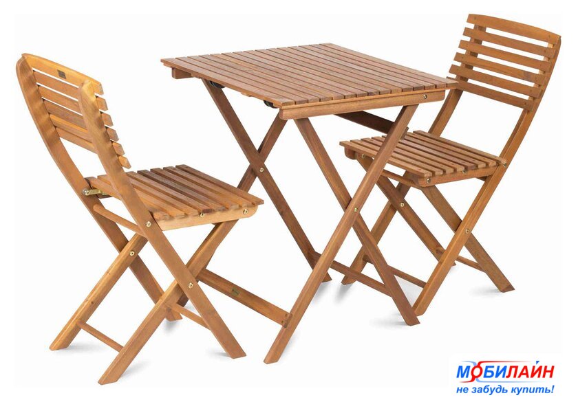 стол + 2 стула, основание - дерево, столешница - дерево, материал: дерево