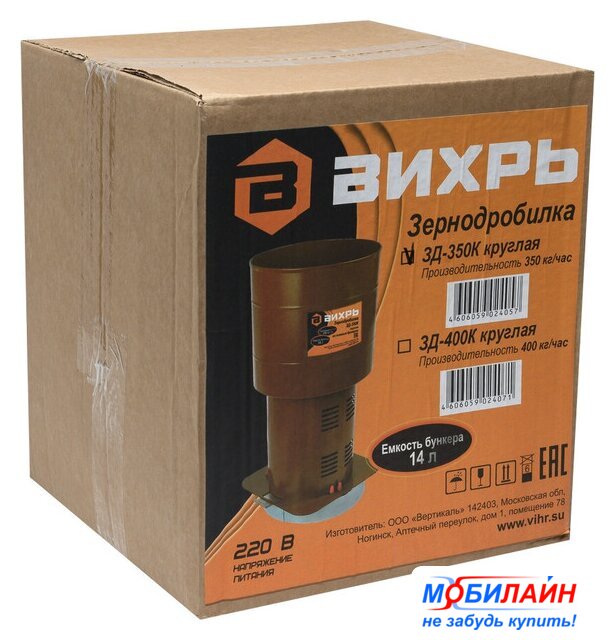 Комплектация | - Зернодробилка – 1 шт.- Руководство по эксплуатации – 1 шт. |
