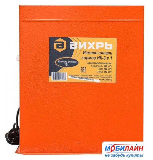 Комплектация | - Измельчитель кормов – 1 шт.- Нож для зерна - 1шт.- Сито – 1 шт.- Универсальный круглый нож для травы и корнеплодов – 1 шт. |