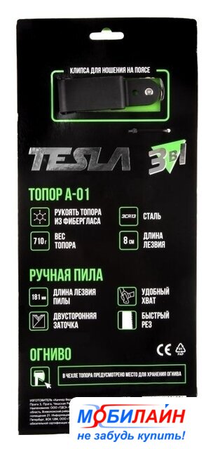 | Комплектация | -Топор-Огниво-Клипса для ношения на поясе-Ручная пила. Длина лезвия 181 мм |