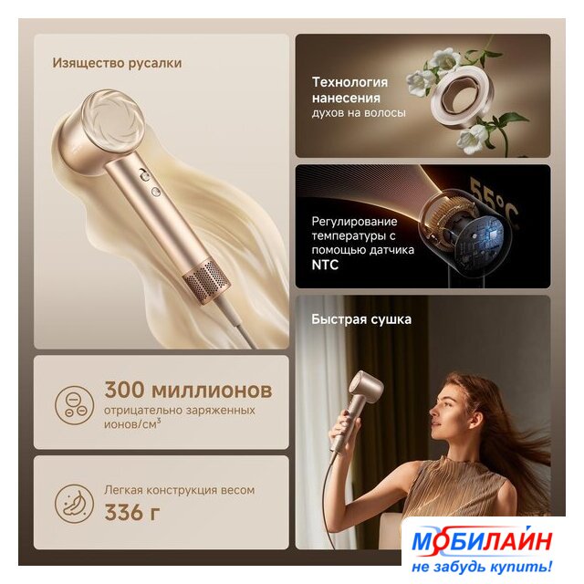 1800 Вт, ионизация, термодатчик, независимая регулировка температуры, золотистый