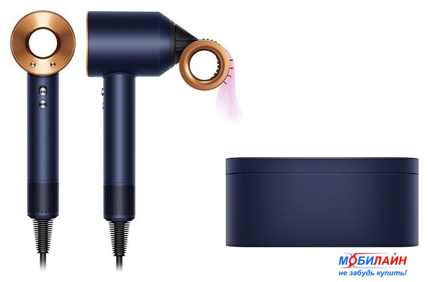 1600 Вт, EC (BLDC) мотор, ионизация, термодатчик, независимая регулировка температуры, шнур 2.8 м, медный/синий