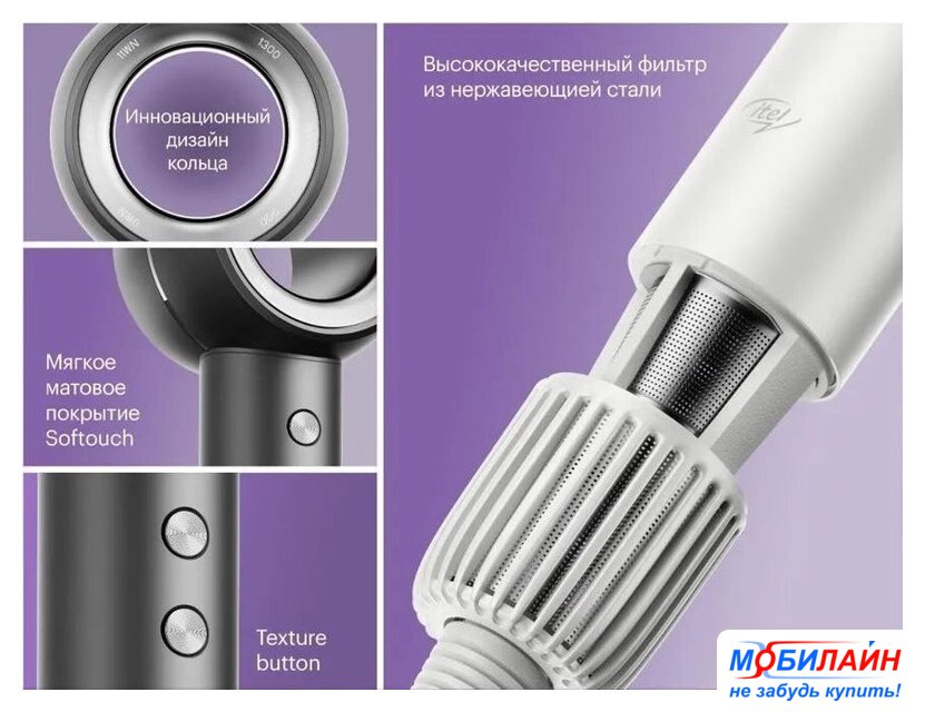 2200 Вт, ионизация, независимая регулировка температуры, шнур 1.8 м, серый