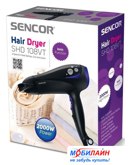 2200 Вт, ионизация, независимая регулировка температуры, шнур 2 м, черный