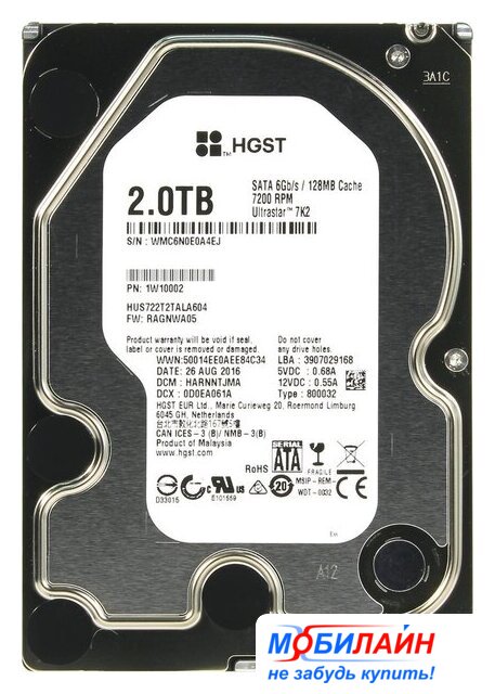 3.5", SATA 3.0 (6Gbps), 7200 об/мин, буфер 256 МБ