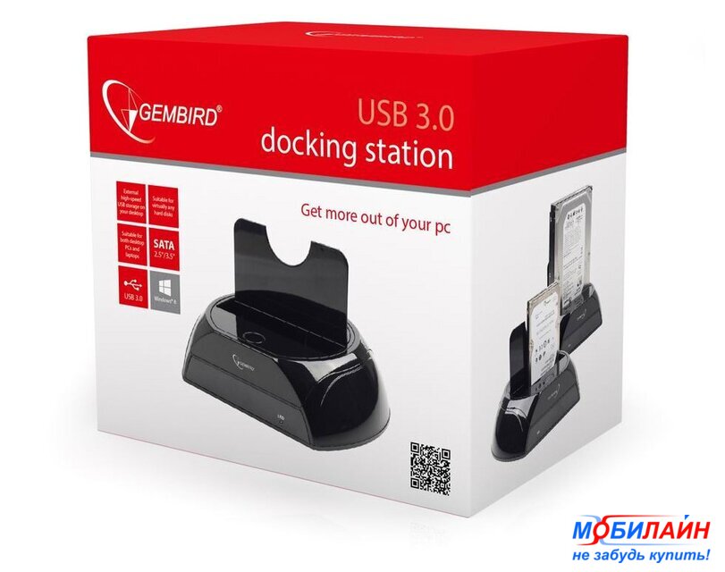 для дисков 2.5"/3.5" SATA, интерфейс USB 3.0, корпус пластик, цвет черный