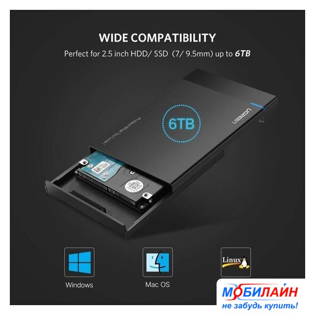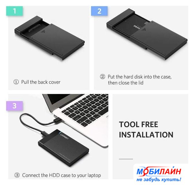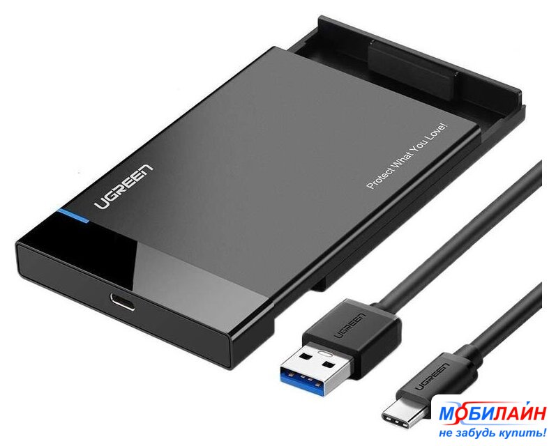 для дисков 2.5" SATA, интерфейс USB 3.0, корпус пластик, цвет черный
