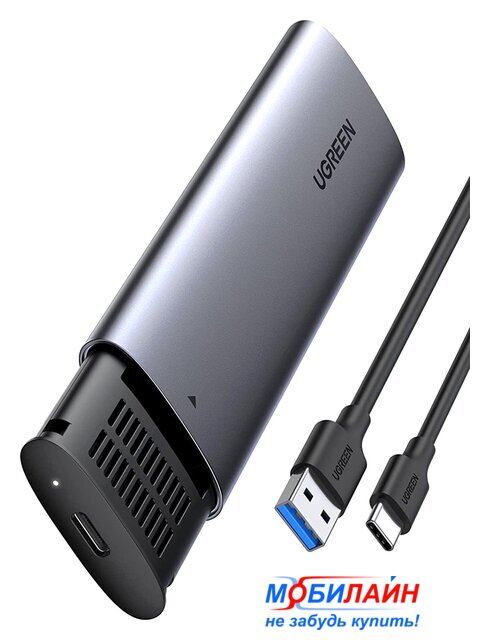 для дисков M.2 SATA, интерфейс USB 3.2 Gen1 Type-A (5 Гбит/с), корпус алюминий, цвет серый