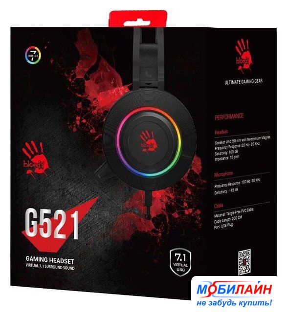 наушники с микрофоном, мониторные (охватывающие), геймерские, 20-20000 Гц, кабель 2 м